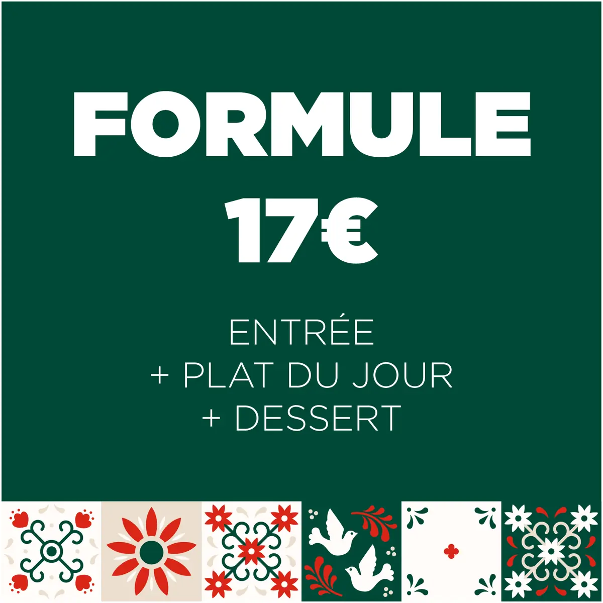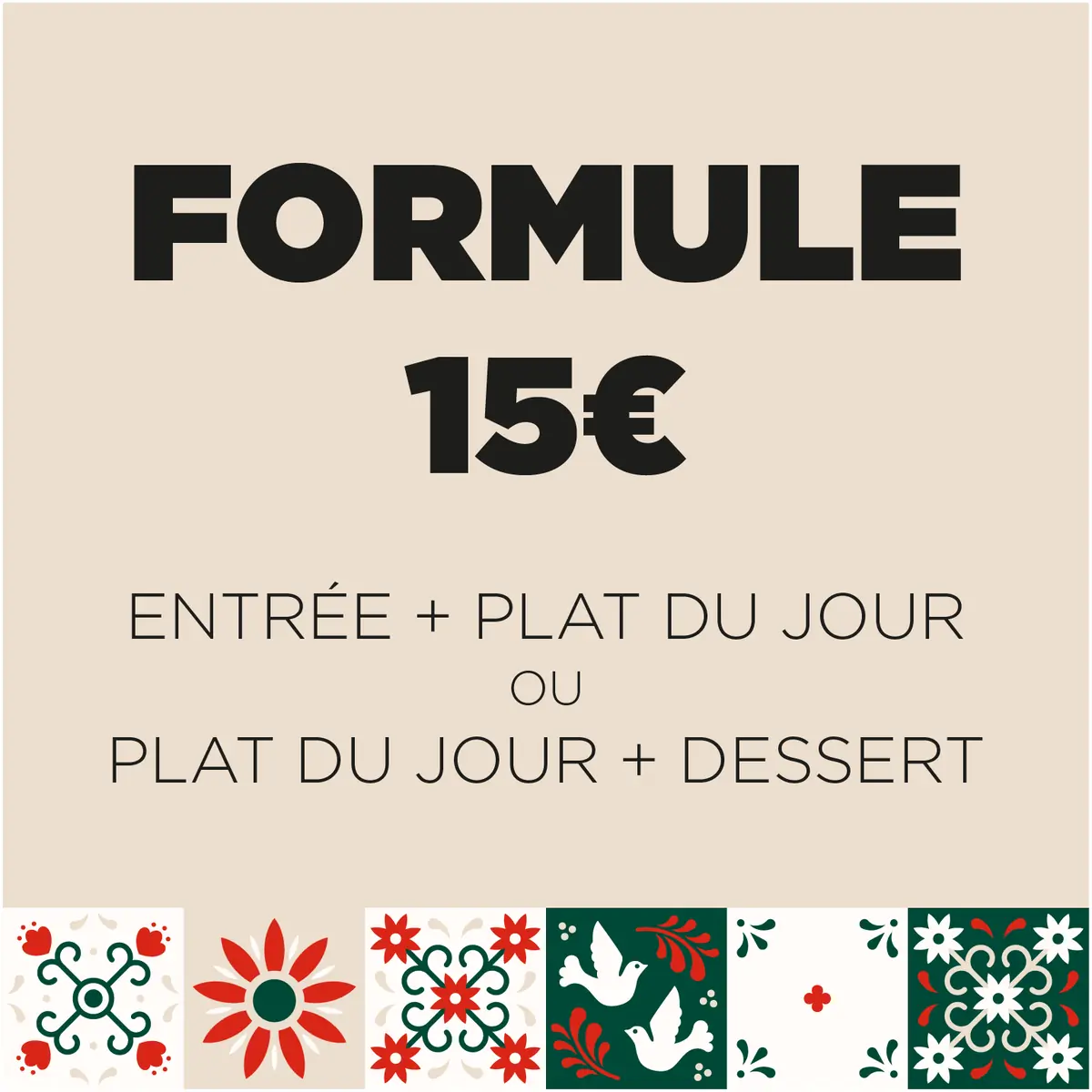 Entrée, plat du jour et le dessert